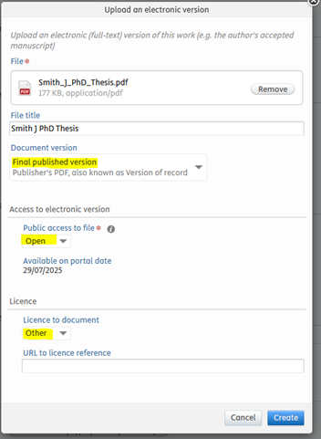 Before your thesis can be published Open Access you will need to confirm that the content does not infringe copyright. See Managing your copyright for more information.