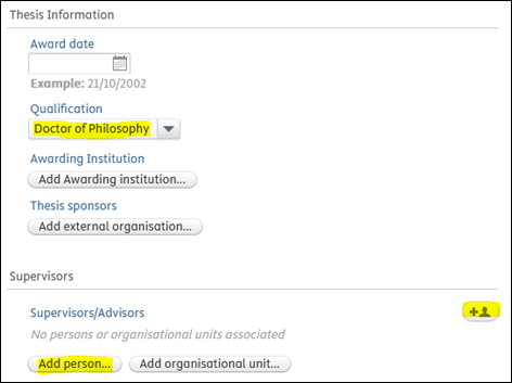 Note: Your supervisor/s, if current CSU staff, will appear when you start typing their surname. Non-CSU supervisors can be added manually.