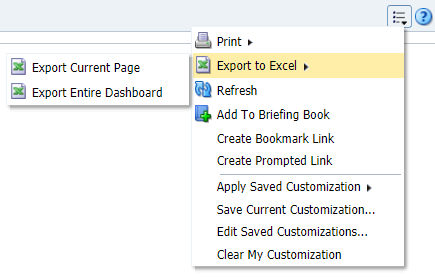 1. Select the Page Options menu in the top right of the Reports window. |